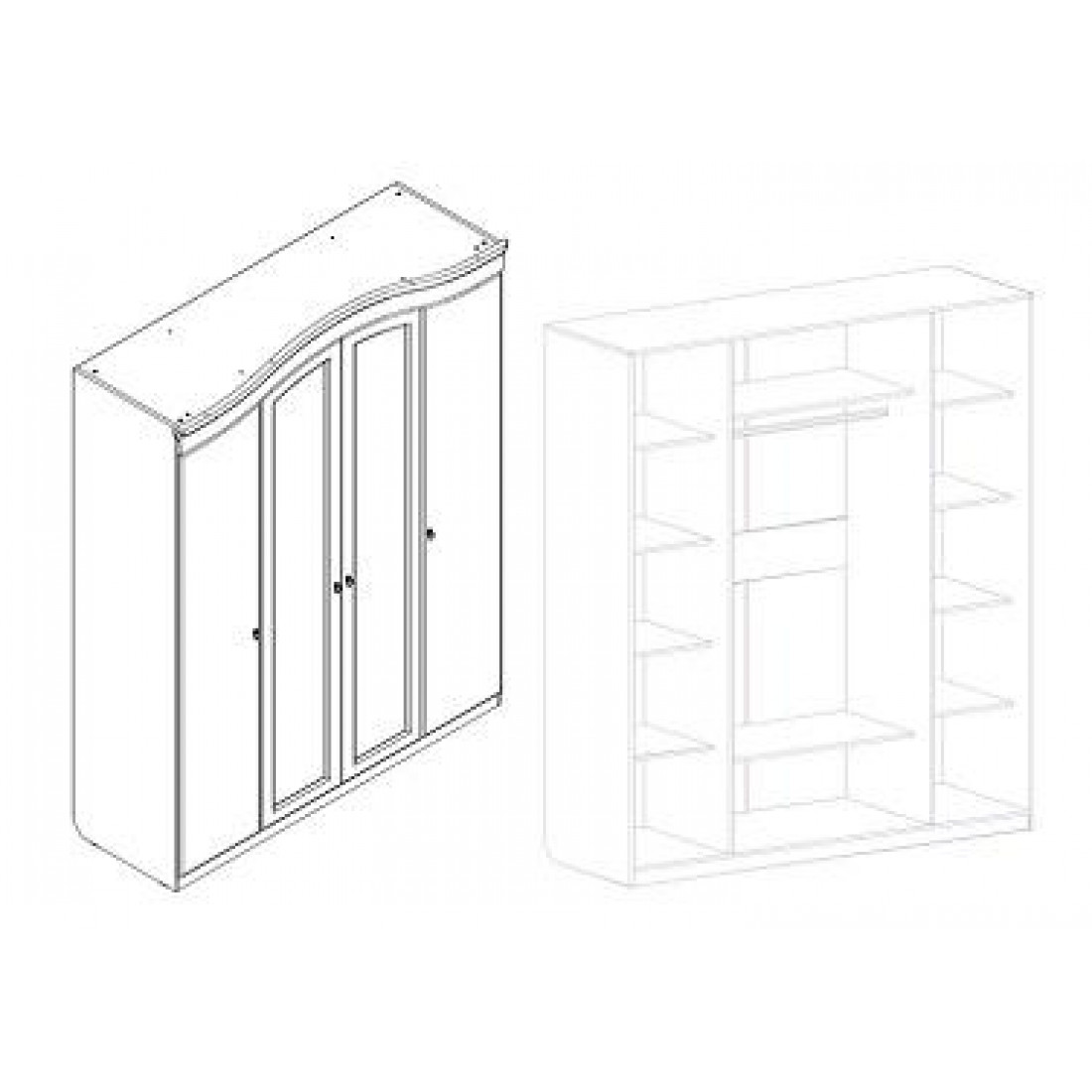 Четырехдверный шкаф для одежды Николь - вместительный шкаф с зеркалом от российской фабрики МебельГрад.
