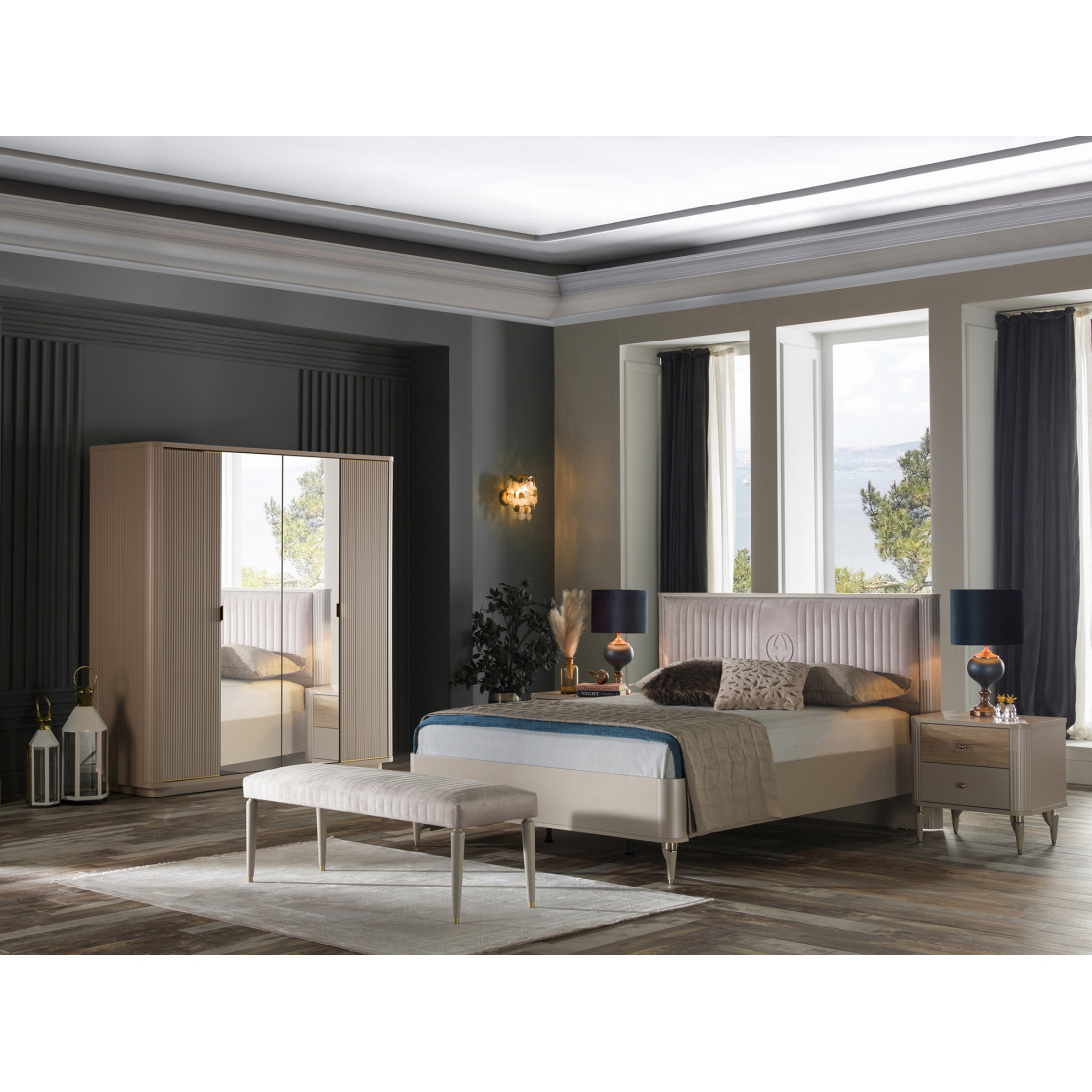 Четырехдверный шкаф Санвито SANV-20 один из  вариантов шкафов, представленных турецким брендом Bellona в коллекции SANVITO. Благодаря своей  длине 1810 мм, он отлично впишется в небольшую спальню. Наполнение же шкафа ,при глубине 660мм, позволит хранить все необходимые вещи для гардероба. В шкафу предусмотрены как полки для белья, так и штанги для вещей. Максимум хранения при минимальных габаритах. Отдельно стоит уделить внимание дизайну шкафчика. Первое, что обращает на себя внимание это округленная форма шкафа, отсутствиеострых углов. Шкафчик кажется обтекаемым со всех сторон. Вертикальные рифленые полосы на фасадах наоборот создают эффект увеличения высоты. .Центральные зеркальные фасады отлично комбинируются с теплыми кремовыми тонами боковых фасадов.