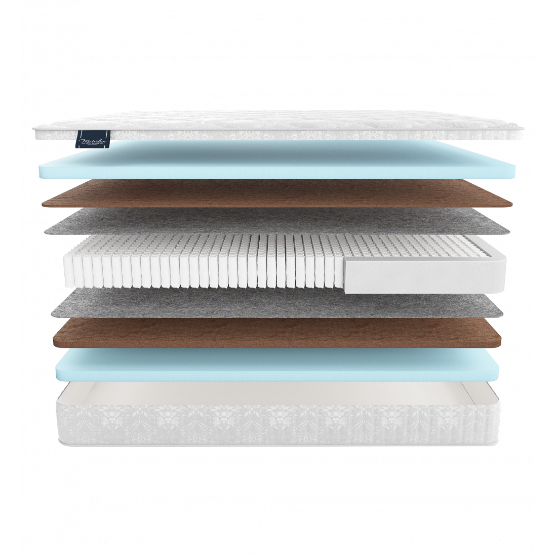 Универсальная пена natural foam (аналог натурального латекса), симметрично расположенная с каждой стороны матраса, сочетает в себе уникальные свойства — плотность и эластичность, а в комбинации с 1 см кокосовой койры делает матрас надежным, подходящим для категории людей, желающих приобрести довольно жесткое изделие. Высота 26 см и его непревзойденные ортопедические свойства не оставят сомнения в том, что вы приобретаете уникальный матрас, который будет служить вам много лет. А смотровое окошко у изножья матраса будет гарантией того, что в нем именно те материалы, которые вы заказывали.