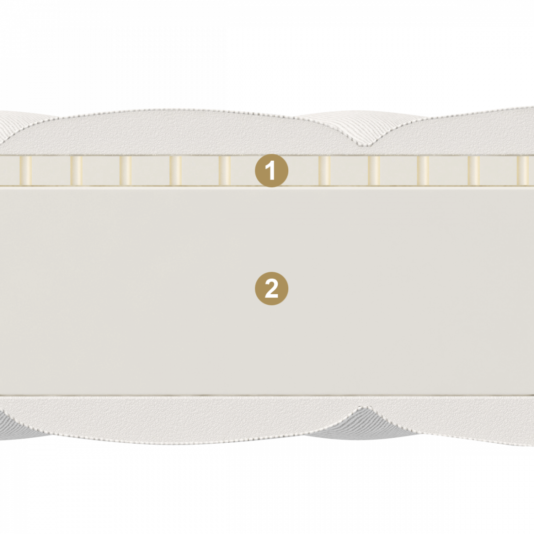 Верхний слой состоит из натурального латекса, который обеспечивает хорошую воздухопроницаемость и придает дополнительный комфорт. Матрас гипоаллергенный.