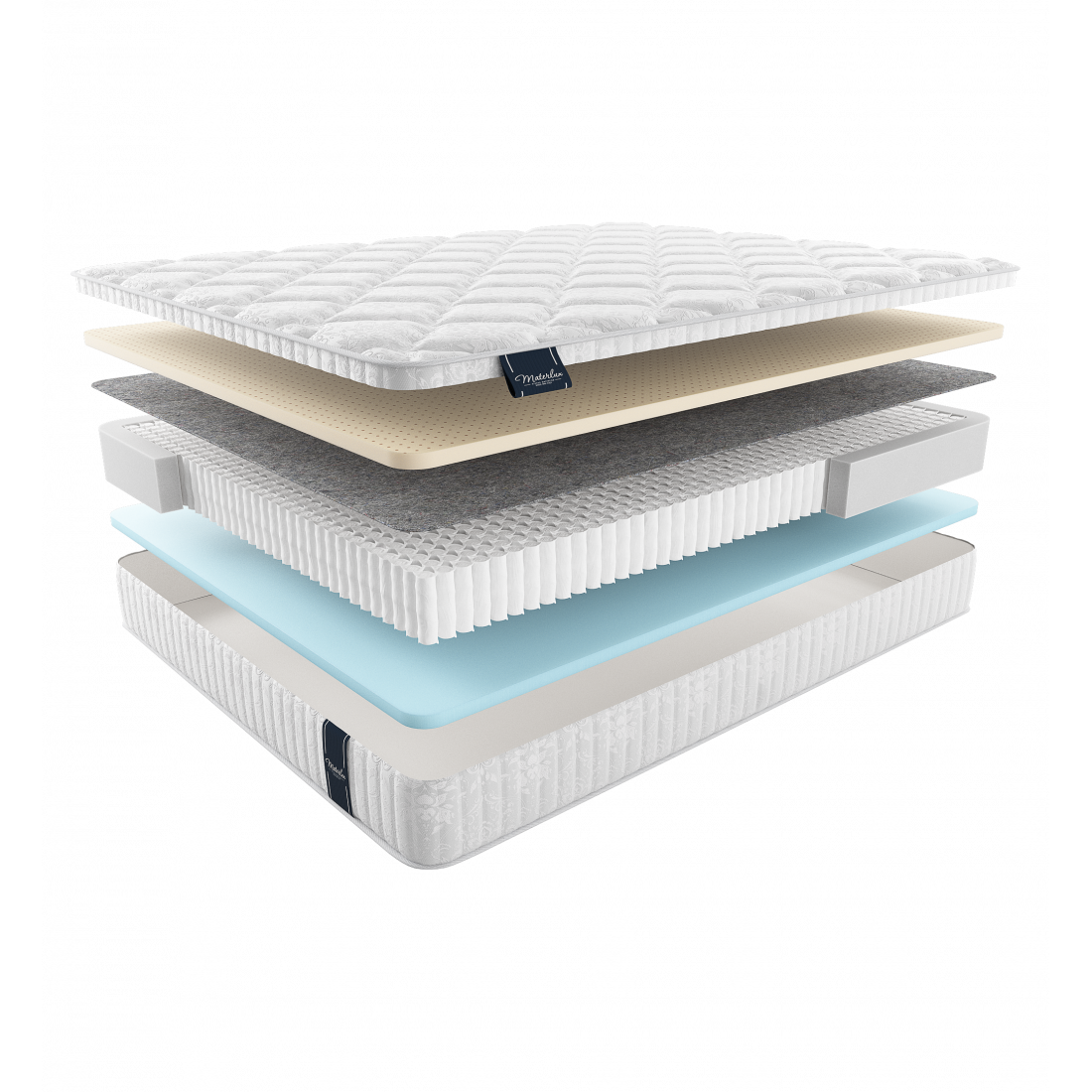 Матрас снабжен независимым пружинным блоком «Мультипакет» (1040 пружин на спальное место), который создает анатомический и ортопедический эффект.