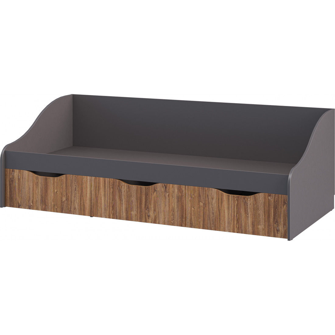 Кровать МН-135-01 в виде тахты с выдвижными ящиками для хранения постельного белья, размер спального места 200*90