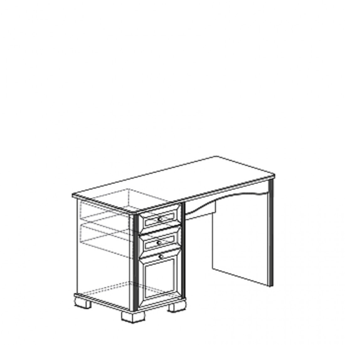 Золотистые ручки с белой патиной подчеркивают классический стиль мебели