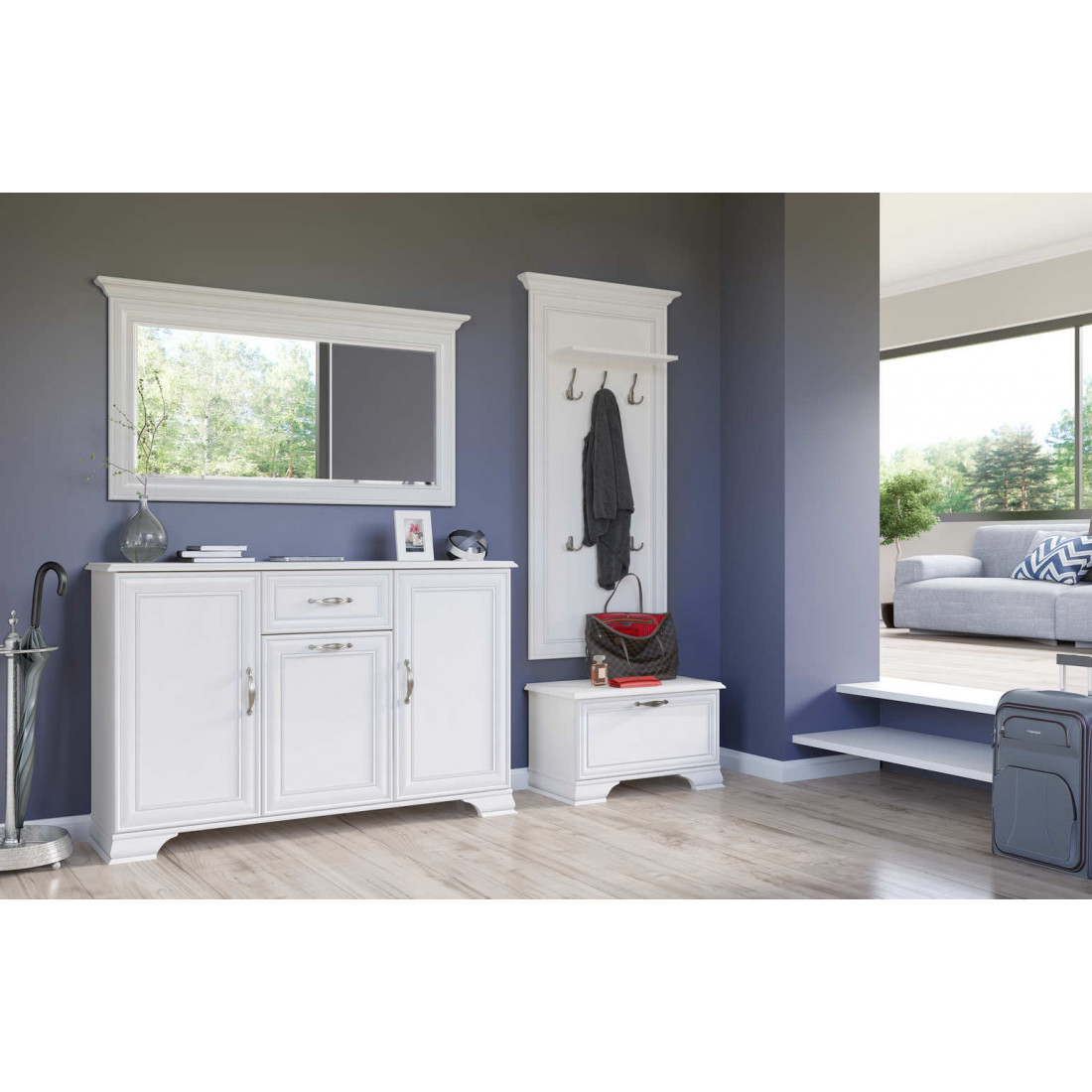 Прихожая Тиффани - это классика, которая всегда остается модной и стильной. Сочетание светлого оттенка с древесной структурой, нежных фасадов, обрамленных изящными планками с патиной и качественных металлических ручек создадут атмосферу тепла и уюта, а возможность использования подсветки делает эту коллекцию особенно привлекательной. Основное достоинство TIFFANY - эстетическая функциональность, которая роскошно дополнит различный по назначению интерьер.