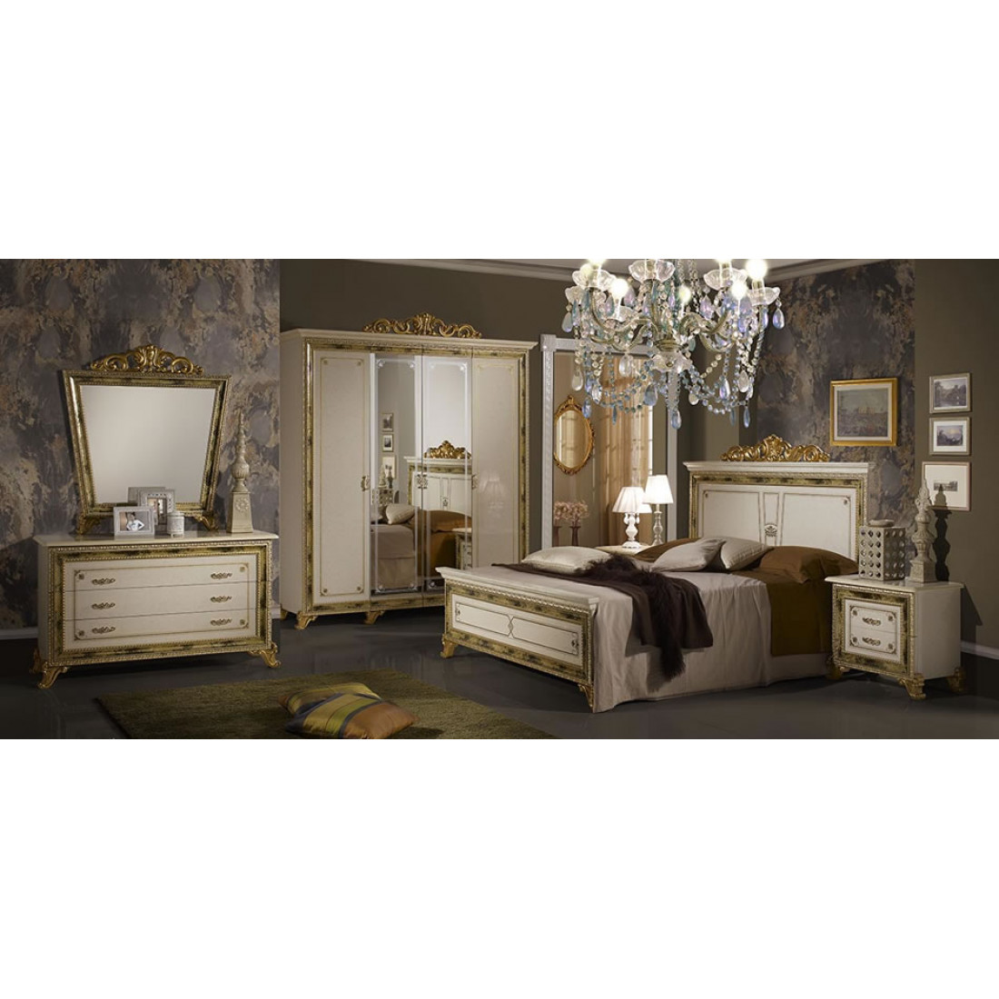 Спальня Катя (беж) от Российской фабрики «ДИА мебель» выполнена в бежевом цвете с глянцевым покрытием. Фасады спальни украшены резной, золотой вставкой. Большие просторные зеркала на шкафу и комоде помогут Вам сделать комнату легче и светлее. Классический стиль коллекции "Катя" по достоинству оценят самые изысканные ценители роскоши. ОРТОПЕДИЧЕСКОЕ ОСНОВАНИЕ ПРИОБРЕТАЕТСЯ ОТДЕЛЬНО